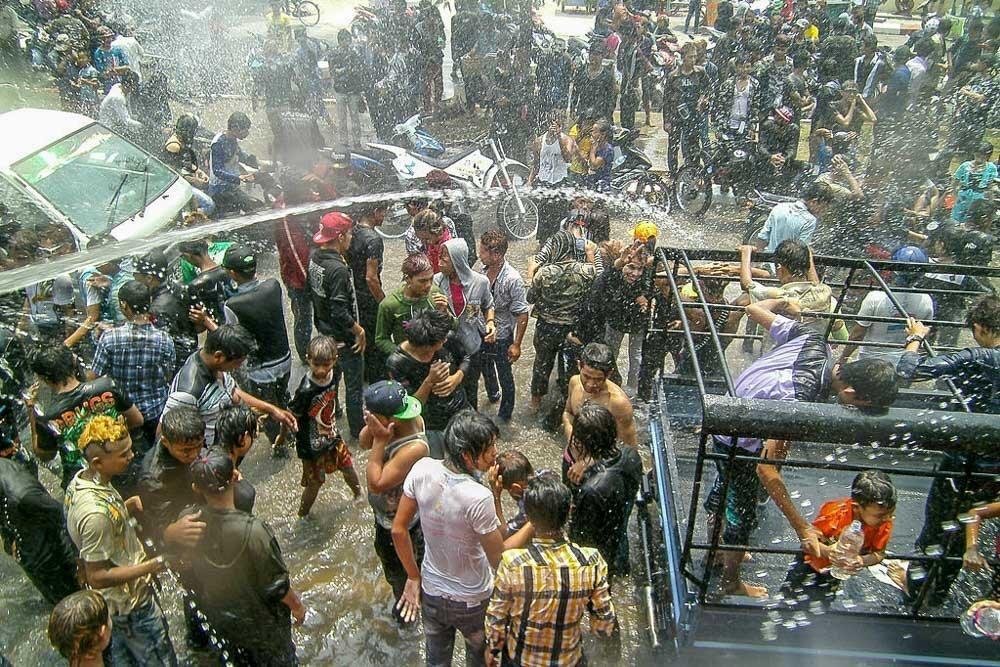 The Water Festival, Thingyan, is a big festival to usher the New Year from April 14-16. Thousands take to the streets for a huge water fight with buckets pistols everything anything anything to squirt water from 10-6 is allied and legal.