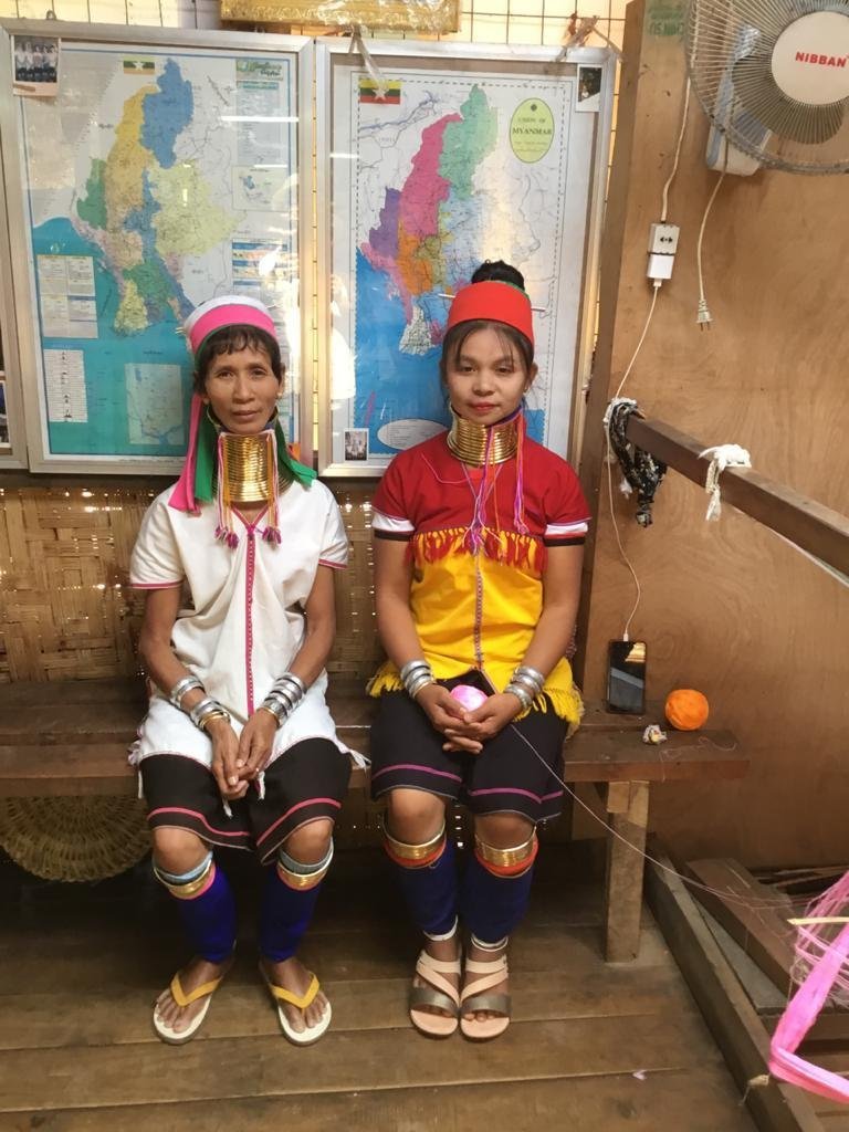 Women of the Kayan Lahwi tribe are well known for wearing neck rings, brass coils that are placed around the neck, appearing to lengthen it. Girls first start to wear rings when they are around 5 years old. Over the years, the coil is replaced by a longer one and more turns are added.