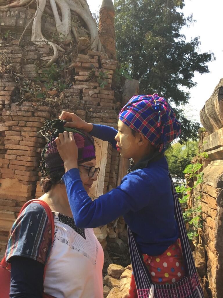 The women with Distinctive headgear in the second photograph belong to the Pa-O ethnic group