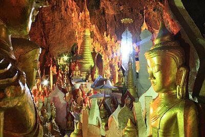 The Pindaya cave extends for about 490 feet along a well-worn path. It is known for its interior which contains over 8,000 images of Buddha. Between the images are also a number of small pagodas as well as stalagmites and stalactites.