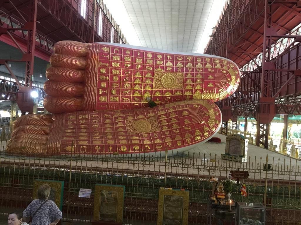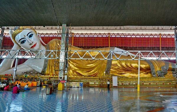 is known for its enormous 65 meters long Reclining Buddha image. The highly revered image is housed in a large shed North of Kandawgyi Lake.