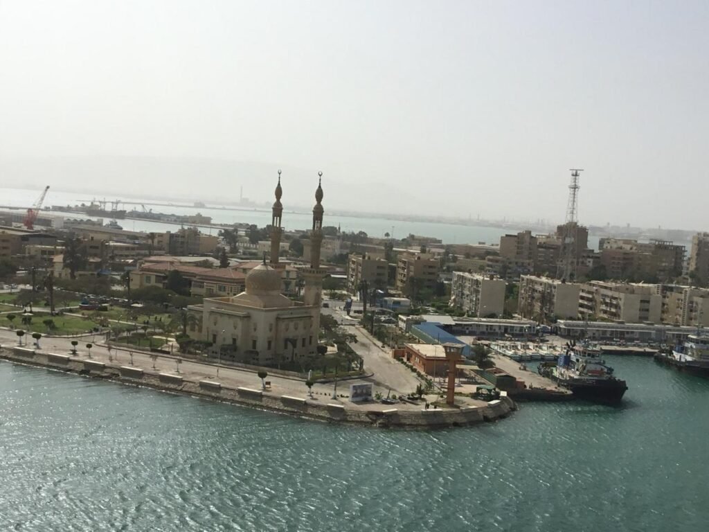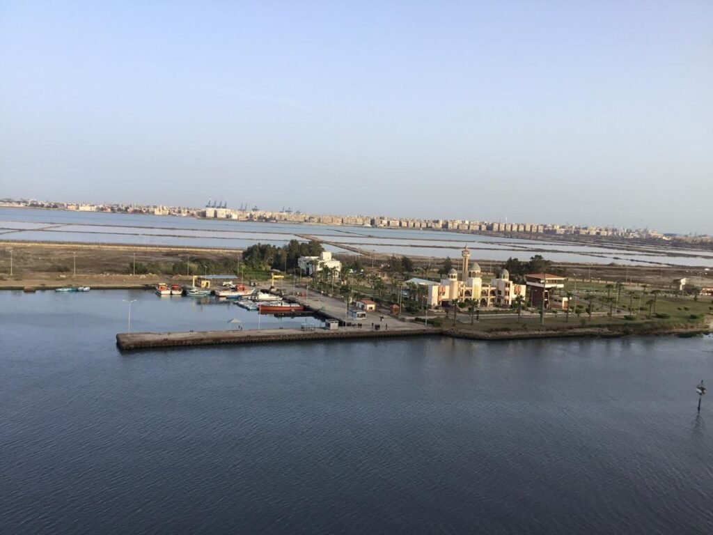 Badr Mosque and Port suez. Getting ready to bid adieu to Suez Canal And where the canal leads into the Gulf of Suez.